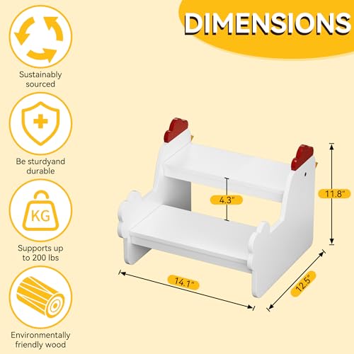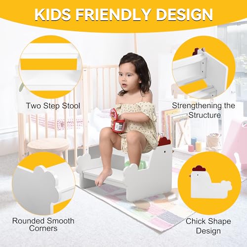 AZODY - Wood Step Stools for Kids, Child Two Step Stool of Chick Shape, Toddler Step Stools Potty Training Stool, Easy to Move Safety for Kitchen, Bathroom, Bedroom, Toilet