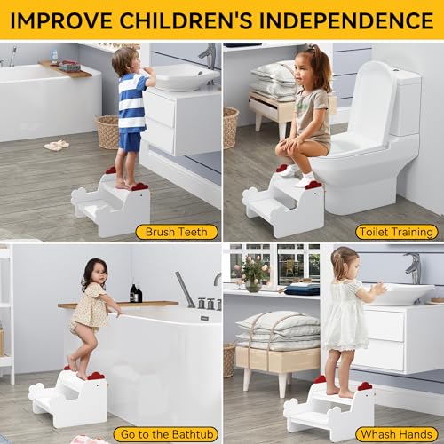 - 【Develop Kids’ Independence】A great helper stool & learning tower for kids! Toddler step stool is suitable for the kitchen, bathroom sink, toilet, bookshelf, high beds. It can help children wash their hands, brush their teeth, go to the toilet and take things. You can also use the toddler stool to go to the child for potty training and kitchen interaction, which can develop the child's independence self-care ability and more helpful to the child's growth and bring happy experience to children.