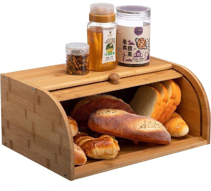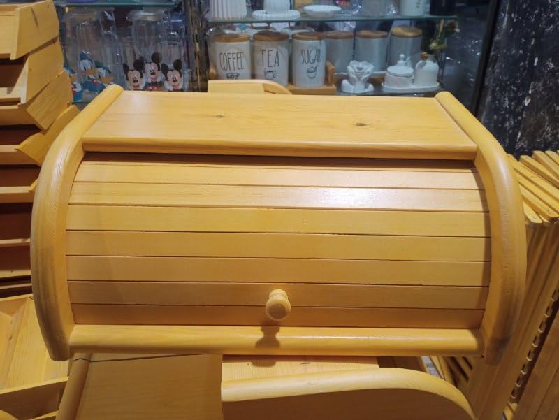 Generic - Wooden Bread Box with Rolling Lid, Practical Design Keeps Bread Freshness, Perfect for Organizing Kitchen Countertop