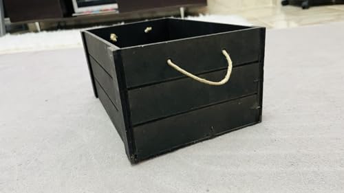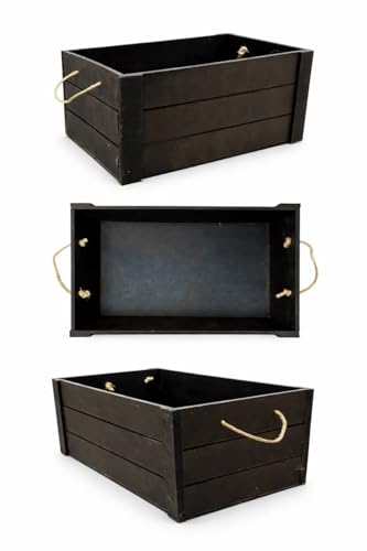Generic - Wooden Storage Crate with Rope Handles, Black, Rectangular Box, Rustic Farmhouse Style 25 X 14 X 13 cm