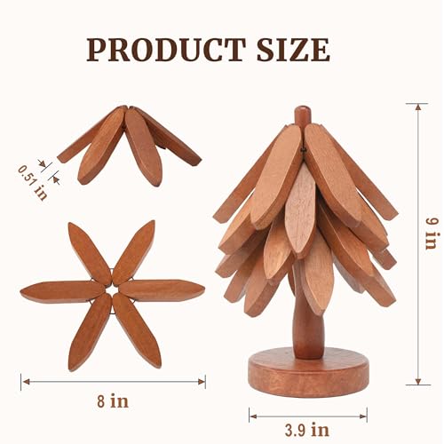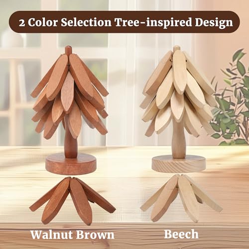 SPRINGKP - حوامل خشبية للاطباق الساخنة، مجموعة حوامل على شكل شجرة، حوامل للاطباق الساخنة - 4 حوامل خشبية + 1 حامل مخزن مثل شجرة الكريسماس، لسهولة التخزين، زينة متعددة الوظائف (بني جوزي)