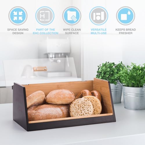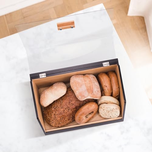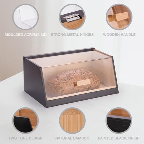 woodluv - woodluv Black Bamboo Bread Box With Acrylic Lid, 35 x 21.5 x 15.3 cm