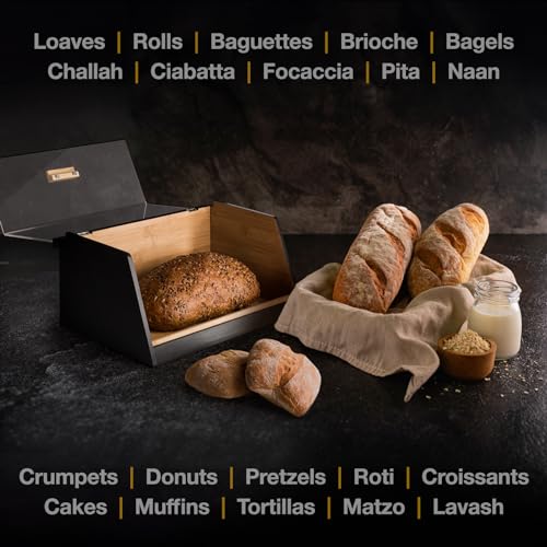 - Sleek Design -The bread bin boasts a sleek and modern design with a rich black color that adds a touch of sophistication to your kitchen. Its minimalist aesthetics make it a versatile addition to various kitchen styles.