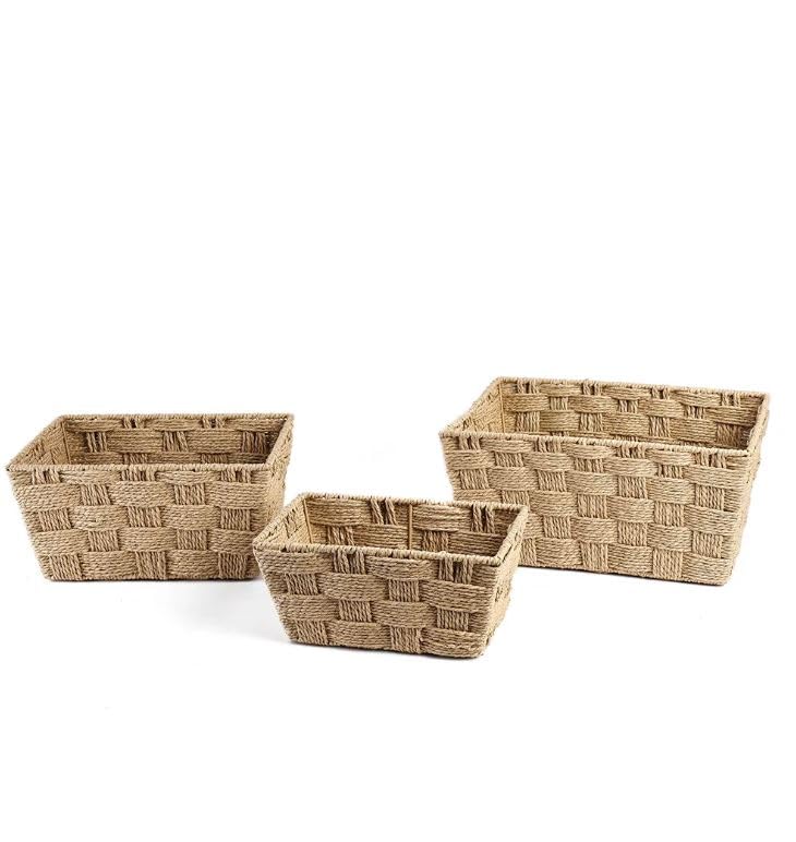 Generic - Woven Seagrass Storage Baskets Set of 3, Natural, Rectangular Nesting Organizers with Checkered Weave Pattern