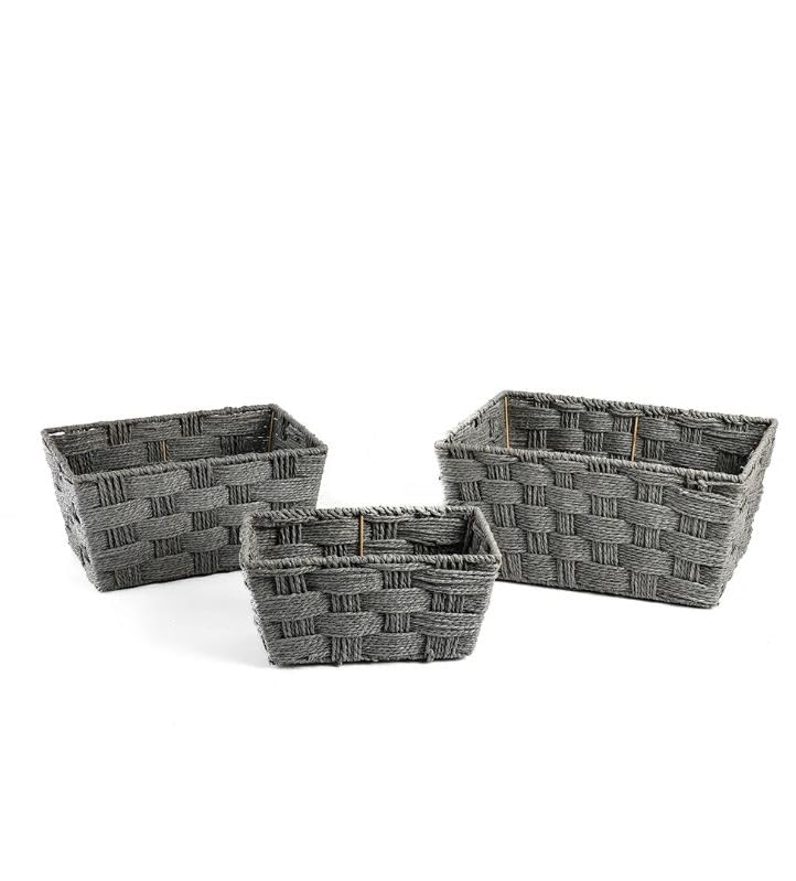 - Set of 3 Nested Baskets: Includes three rectangular woven storage baskets in varying sizes that nest inside each other for convenient storage when not in use