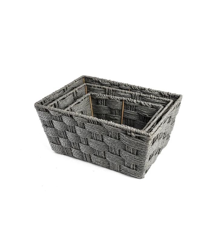 Generic - Woven Storage Baskets Set of 3, Grey, Rectangular Nested Organizer Bins with Handles