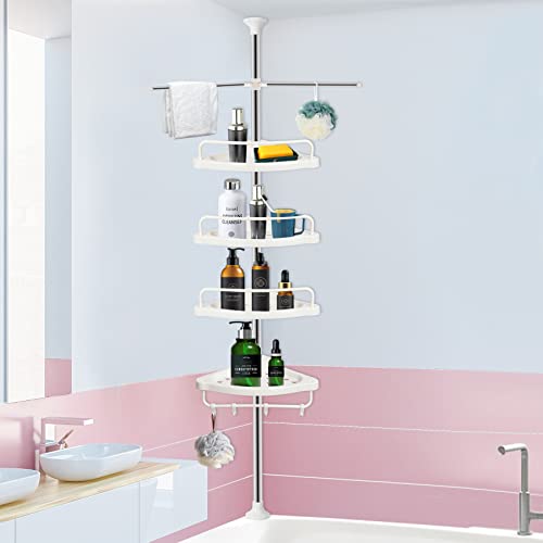 WSBArt - Shower Caddy Tension Pole Corner Shower Caddy Rustproof Stainless Steel 4Tier Height Adjustable Shower Organizer Bathroom Standing Shower Shelf Storage Rack Organizer
