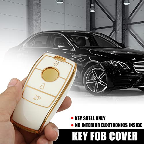 X AUTOHAUX - X AUTOHAUX Car Key Fob Cover TPU Case 3 Button for Mercedes-Benz E Class W213 E300W213 E200 2017-2019 S Class 2018-2019 Keyless Remote Key Protector Shell White