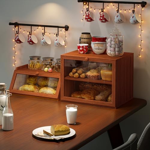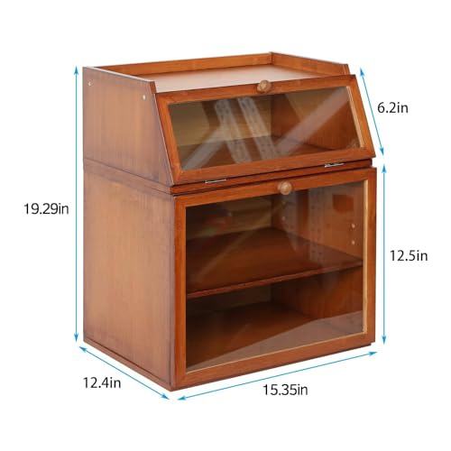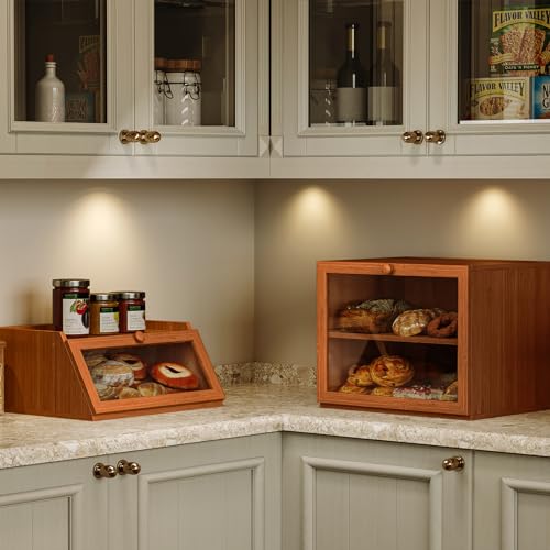 - 【Natural Material 】 bread box for kitchen countertop made by strong bamboo wood, healthy material. This farmhouse chic style adds vintage style and warm elegance to your kitchen counter.