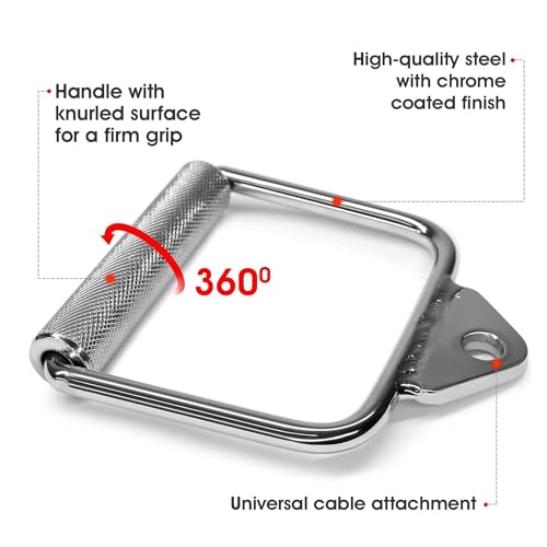 - 💖【Strong & Durable】Our D handle cable attachment is made with heavy-duty steel. High polished chrome finish for increase their longevity, single D handle is more strong and durable without corrosion and rust.