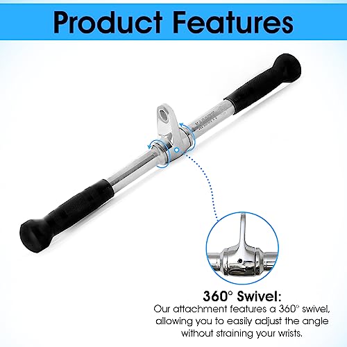 - 360° Swivel: No more uncomfortable wrist positions or wrenching motions. Our attachment features a 360° swivel, allowing you to easily adjust the angle without straining your wrists. It's perfect for pull-downs, push-downs, rows, curls, and more.