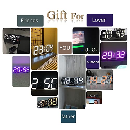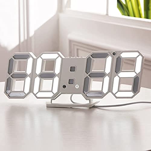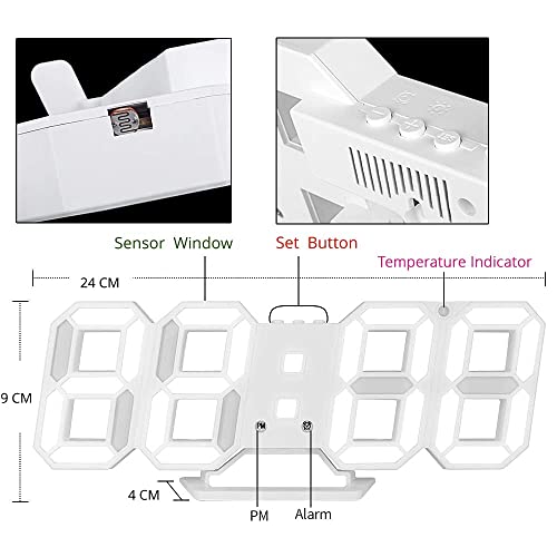 xinyida - ساعة حائط رقمية بإضاءة ليد ومنبه للتاريخ ودرجة الحرارة خلفية تلقائية للطاولة وسطح المكتب وديكور المنزل، معلقة، أبيض، بلاستيك