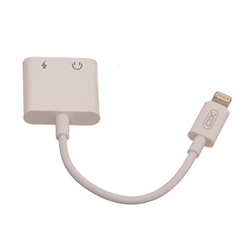 XO - كابل محول صوت 2 في 1 من اكس او NB172B الى لايتنينج و3.5 ملم مع مخرج 5 فولت - امبير بحد اقصى 150 مجموعة قطعتين - ابيض