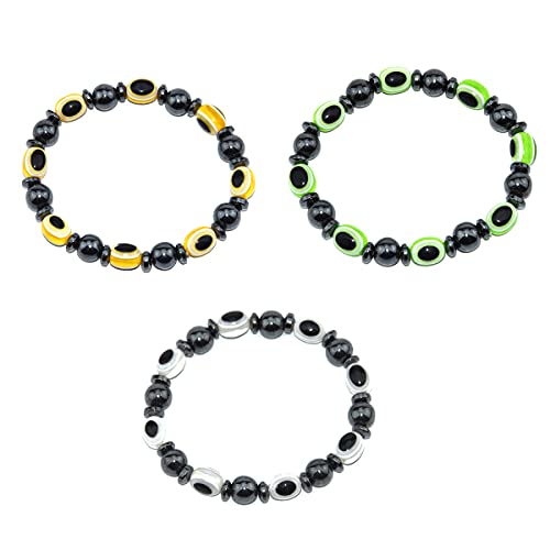 Generic - سوار مغناطيسي مرن وقابل للتكديس من احجار هيماتيت بطاقة شفاء وتخفيف التوتر وابعاد عين الحسد للنساء الرجال من تزون زي - 3 قطع, معدن, خليط معدني