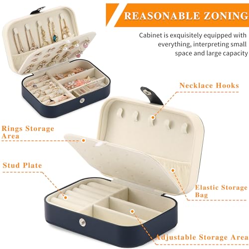 XZUZ - Travel Jewelry Box, PU leather Small Jewelry Organizer For Female Girls, double layer portable mini travel case for storing earrings, rings, necklaces.(dark blue)