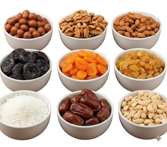 Generic - Yamish Ramadan (9 Fresh Varieties) -125g Hazelnut-125-125 Camel Eye-125 Mashiya -125 Carcass-125 Raisins-125 Coconut-125 Sudani-500 Dates