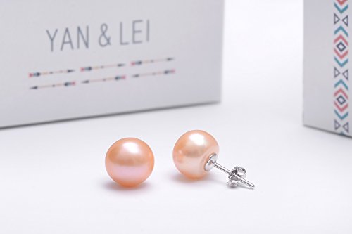 YAN & LEI - YAN & LEI Sterling Silver 6MM Freshwater Cultured Pearl Button Stud Earrings - Handpicked AAA Quality, Pearl,