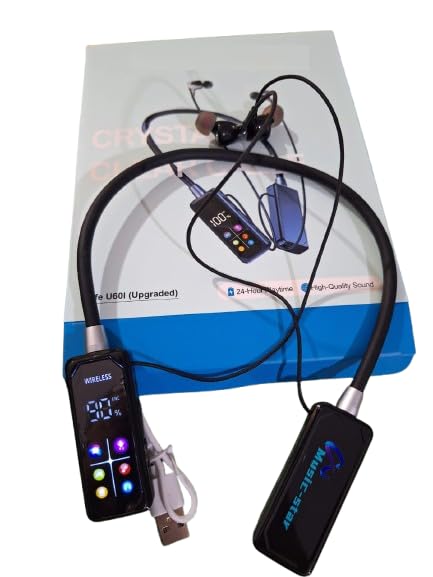 Generic - سماعات رأس لاسلكية تلتف حول الرقبة بصوت واضح ووقت تشغيل يصل إلى 24 ساعة، تدعم بطاقة تي اف وبشاشة ال اي دي، (U60I)