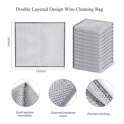 - 【Double Layer Design】: The stainless steel wire dishwashing cloth rags are designed with a double layer of wire, providing better scrubbing and cleaning power. This design makes the wire rags ideal for cleaning pots, pans, dishes, and other kitchen utensils.
