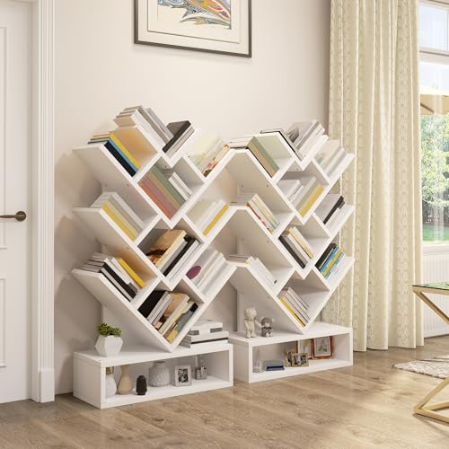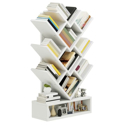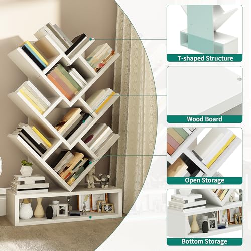 - Yitahome Tree Bookshelf, Floor Standing Bookcase With Wooden Drawer Industrial Shelving Units Display Storage Shelf For Living Room,Home,Office, White Book Shelves