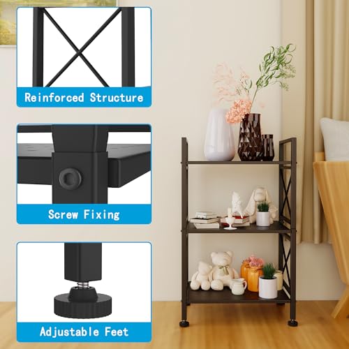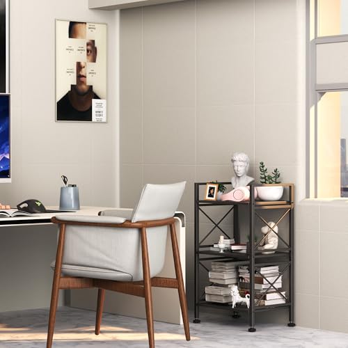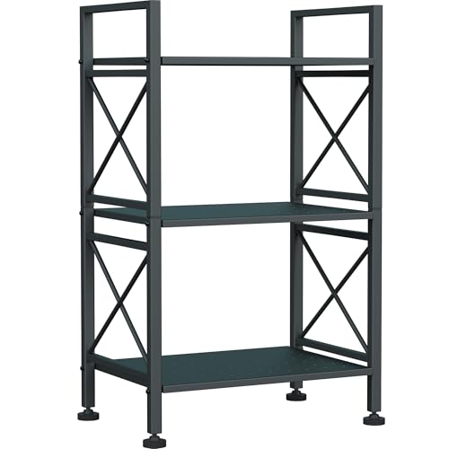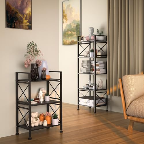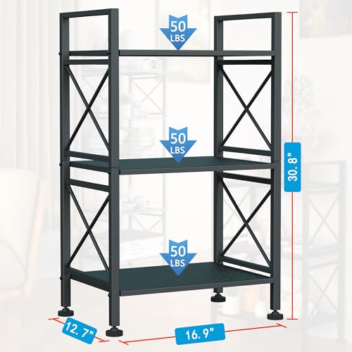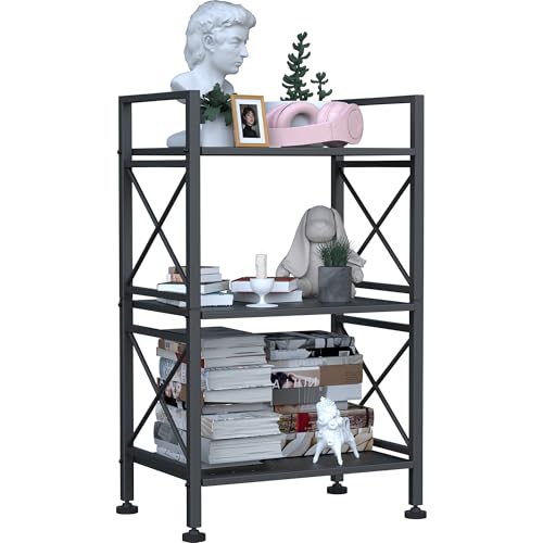 YOHKOH - رف كتب من 3 طبقات من يوهكون، خزانة كتب طويلة ضيقة مع ارفف، منظم تخزين رف كتب معدني للاقراص المضغوطة/الافلام/الكتب، وحدة رفوف عرض صناعية لغرفة النوم وغرفة المعيشة، اسود