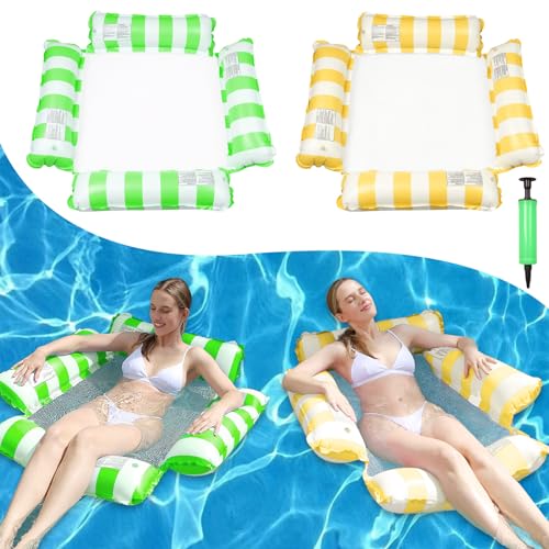 YOUNG WIND - 2 Pack Inflatable Lilo Pool Floats Water Hammock, Floats for Swimming Pools, 4 in 1 Pool Inflatables (Saddle, Lounge Chair, Hammock, Drifter), Pool Hammock Floats for Adults