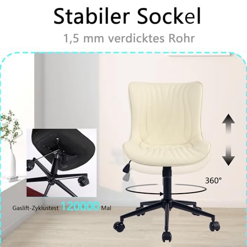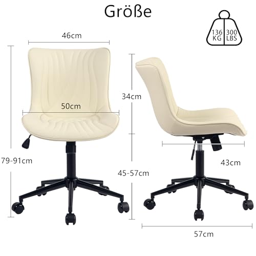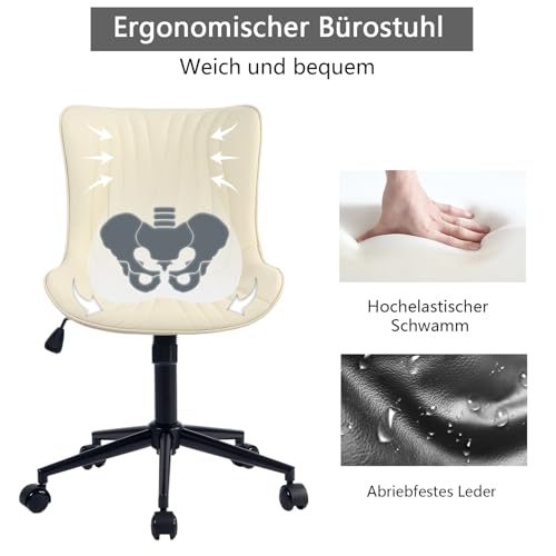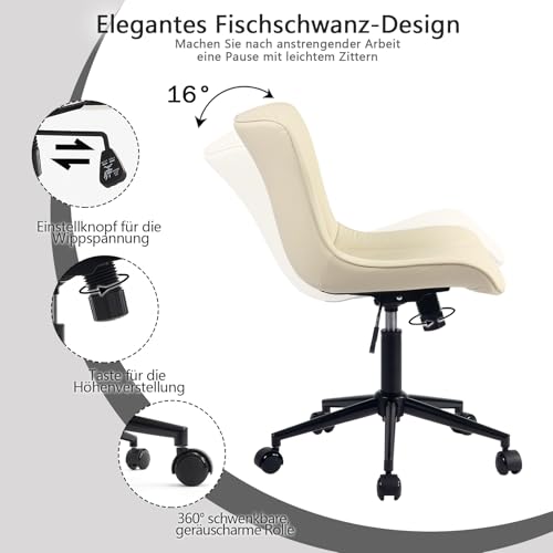 YOUTASTE - YOUTASTE Ergonomic Office Chair with Rocker Living Room Chair Height Adjustable 360° Swivel Leather Chair with Wheels Home Computer Work Modern Vanity Chair, Beige