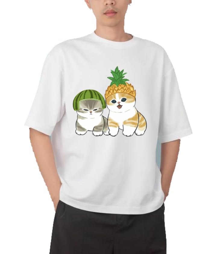 Generic - Youth black white oversize fit t-shirt kitty kitten kawaii cute cat 64