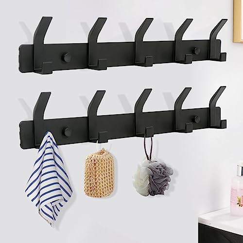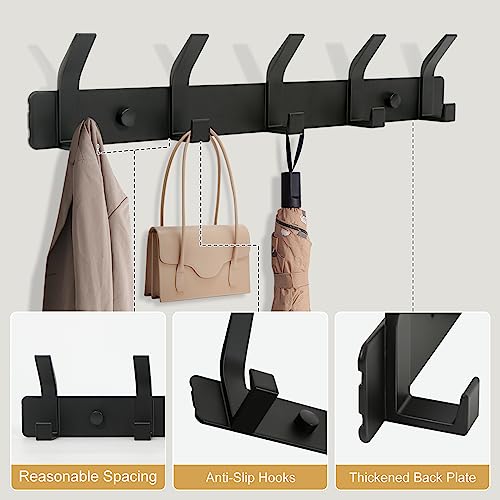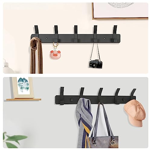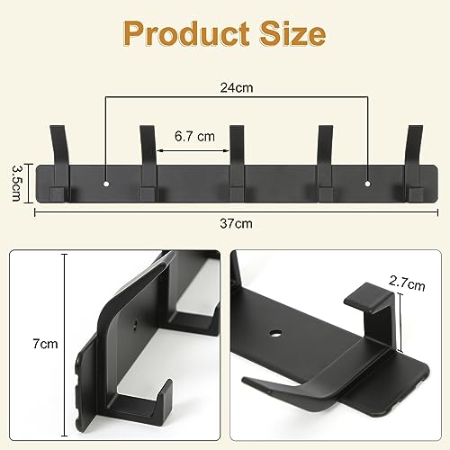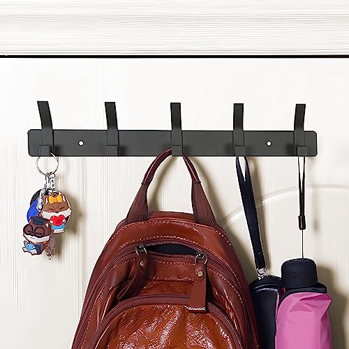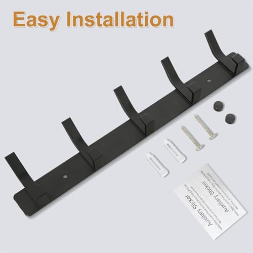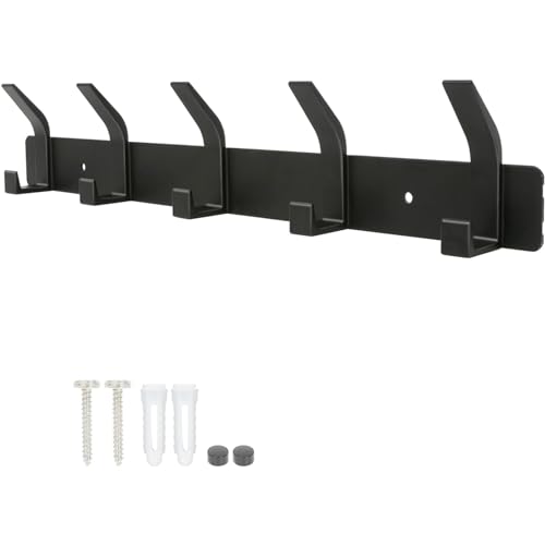 YUNISS - Coat Hook, Coat Rack, Wall Hook, Aluminium Hook Rack with 5 Hooks, Wall Hooks, No Drilling, Hallway, Bedroom, Bathroom (Black, 5 Hooks)