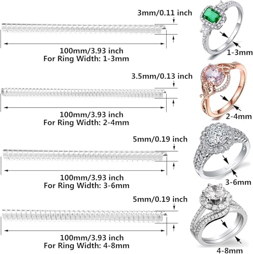 Zebroc - 4 Pcs Ring Sizers for Loose Rings, Ring Size Adjuster Spacers or Tightener, Invisible Guards, 4 Sizes Fitter, Resizer Spiral Silicone Ring Adjuster for Almost Any Rings, Reduces Size by 0.5-1.5