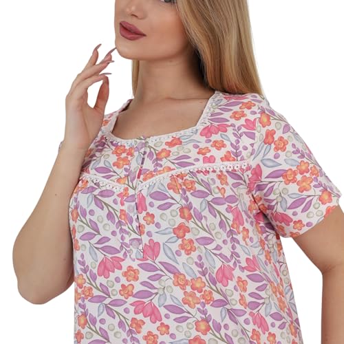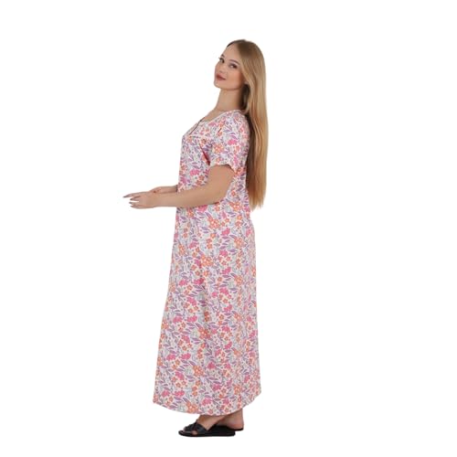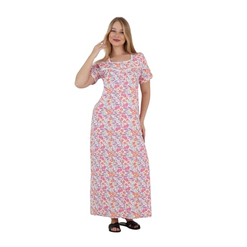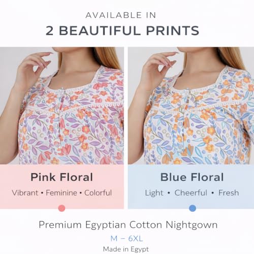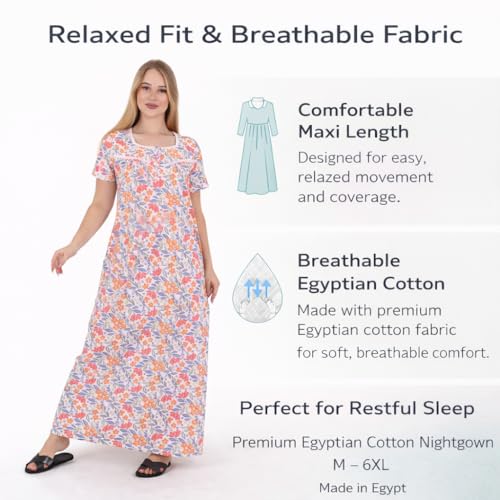 ZECOTEX - ZECOTEX Women's Egyptian Cotton Floral Maxi Nightgown | Soft Breathable Short Sleeve Sleep Dress M-6XL | Made in Egypt