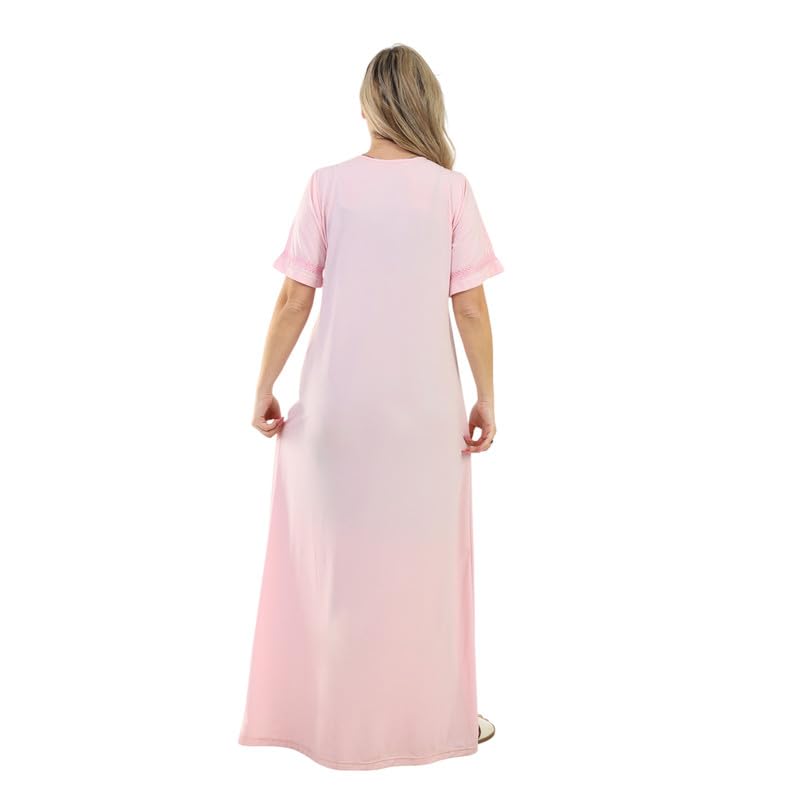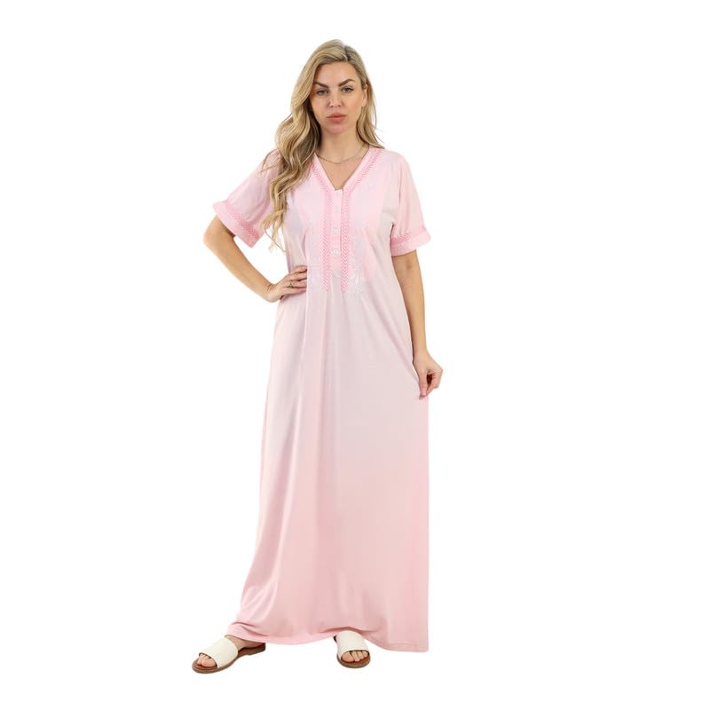ZECOTEX - عباية صيفية ماكسي للنساء، فستان طويل مطرز بلون أزرق فاتح، فستان ماكسي أنيق بنصف كم من الفسكوز، قماش خفيف الوزن لتوفير أقصى قدر من الراحة، ملابس نوم للنساء من زيكوتكس
