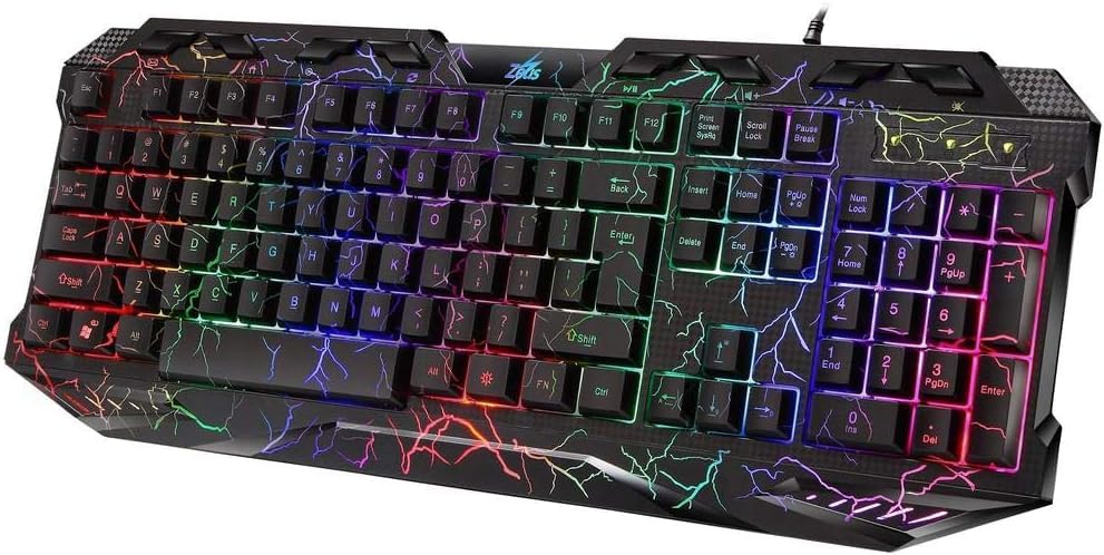 Generic - ZEUS Rainbow Membrane Gaming Multimedia Keyboard Full Size Design - (Arabic/English) Key - 112 Keys with Numeric Keypad, Quiet Keys, Plug and Play for Windows/PC/Laptop/Desktop
