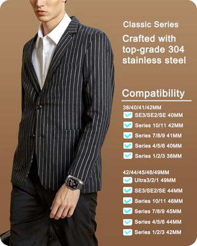 Zkius - سوار ساعة آبل الترا / الترا 2، اس اي، سلسلة 9 8 7 6 5 4 3 2 1 38 ملم 40 ملم 41 ملم 42 ملم 44 ملم 45 ملم 49 ملم، سوار آي ووتش من الفولاذ المقاوم للصدأ للنساء والرجال من زكيوس (الساعة غير متضمنة)