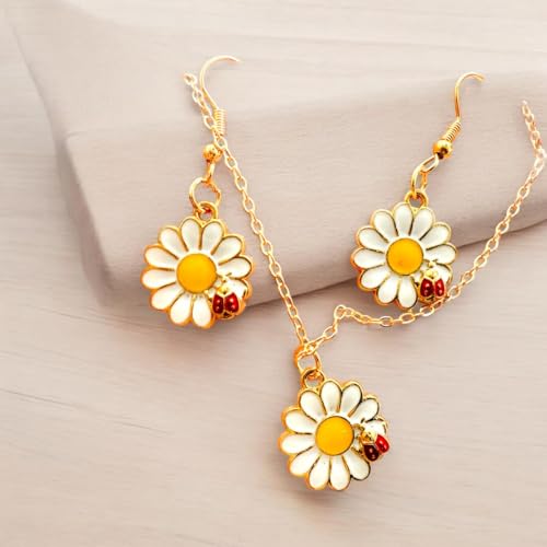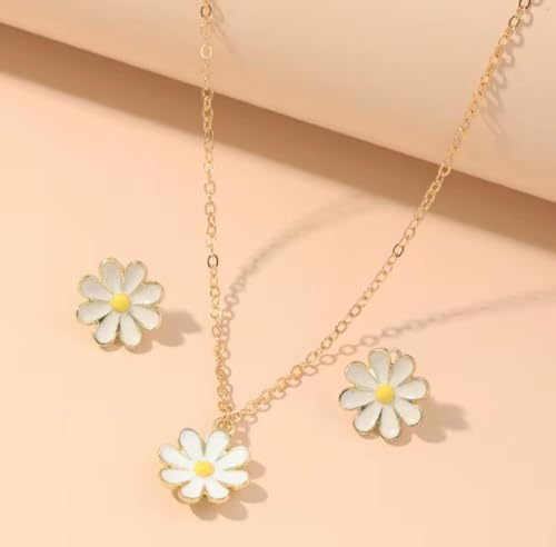 Lotus Flower Accessory Delicate Flower Earrings and Chain Set with Delicate Details to Make Them Realistic Look Gold Tone Gives the Set Shine and Shine, Suitable for Different Ages