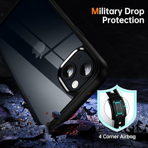 جراب شفاف كريستالي مضاد للبهتان للحماية - السقوط - الدرجة العسكرية ومضاد للصدمات لموبايل آيفون 15 + 6.7 بوصة - دلع موبايلك - لون أسود البولي يوريثين الحراري iPhone 14 Plus ايفون بلس