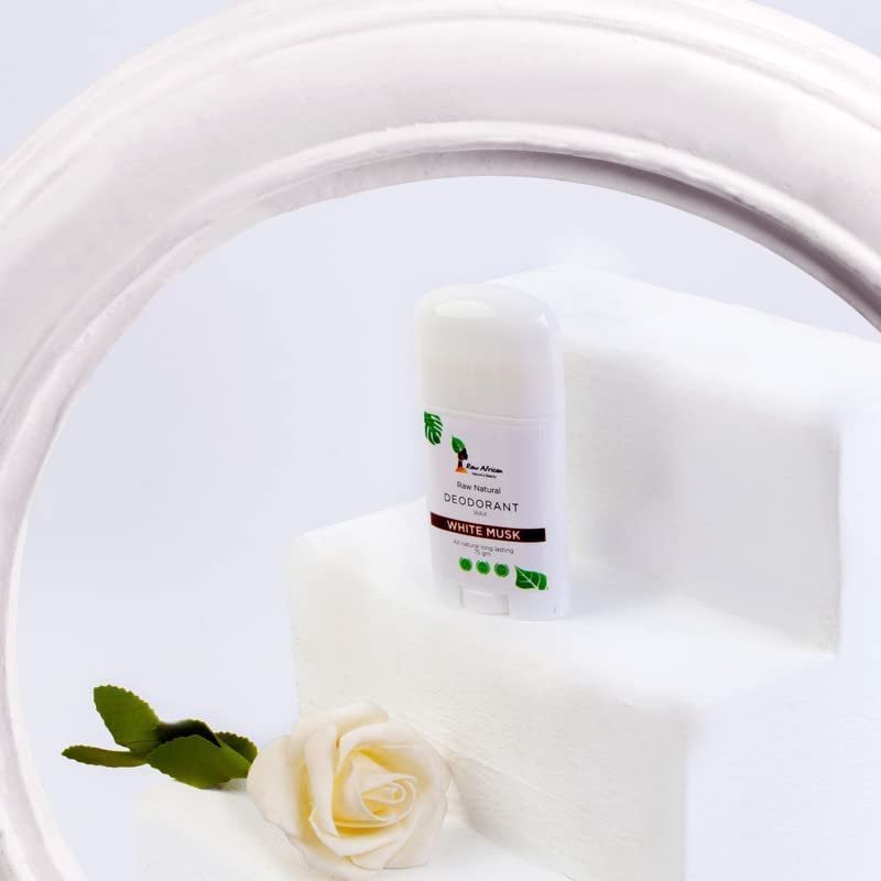 Raw African | Natural Deodorant | Long Lasting | Natural Honey Wax | Aluminum Free | No Harsh Chemicals | No Clogged Pores | Shea Butter | Coconut Oil | White Musk | 75gm