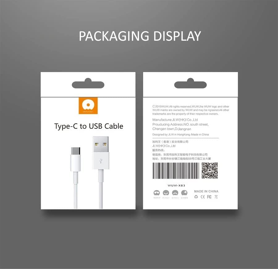 WUW 2A USB to USB-C Fast Charging and Data Transfer/Sync Cable for USB-C Smartphones, iPad & Tablet, Macbook & Laptop, Mobile Accessories, and Digital Devices (USBC)