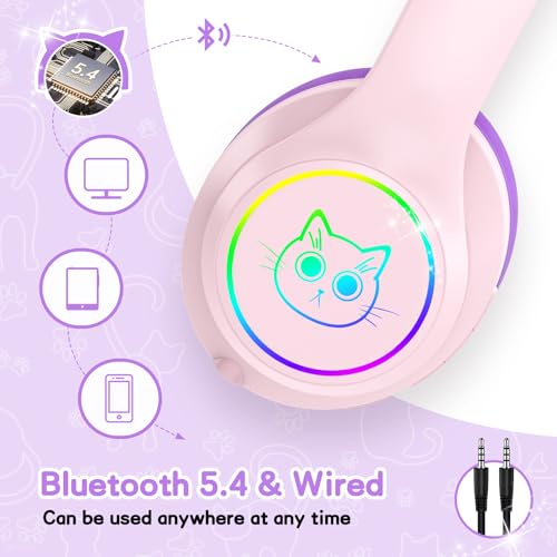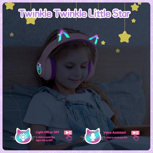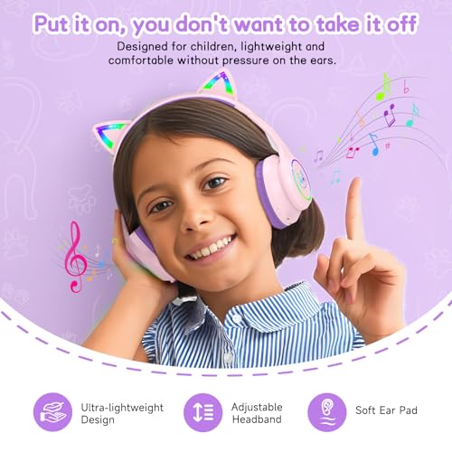 - 【Cool Lighting】Our kids bluetooth headphones comes with RBG cat ear colorful LED lighting, can be freely double-click the button to control on and off, cool lighting can not only arouse kids curiosity, but also make the kids no longer lonely at night, bring unique music enjoyment to kids.