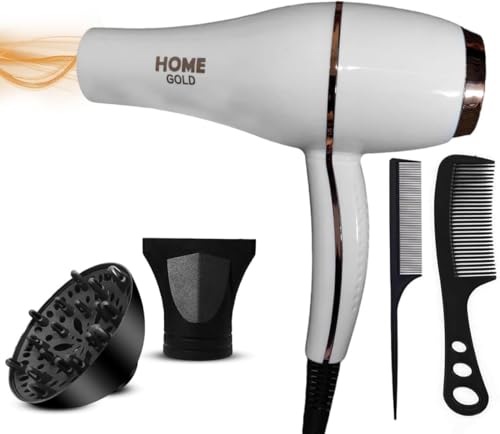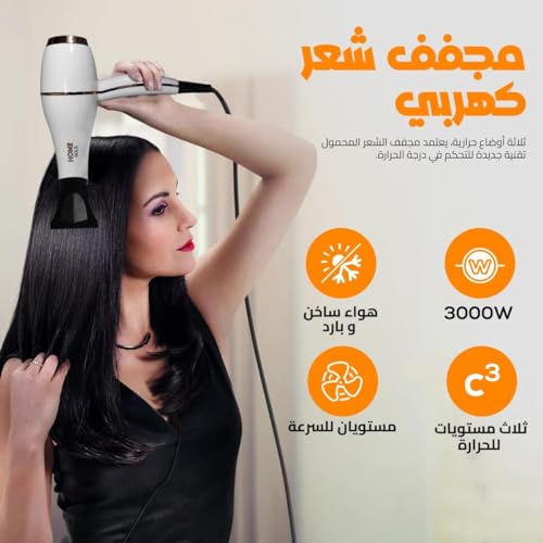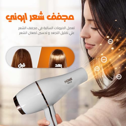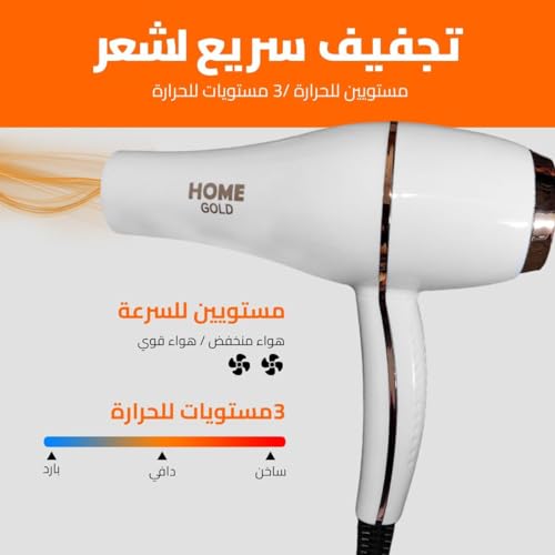 مجفف شعر هوم جولد 3000 - أداء تجفيف فائق بإعدادات متعددة، عناية أيونية وحماية من الحرارة الزائدة (HG-688 (أبيض))، 3000.0 واط