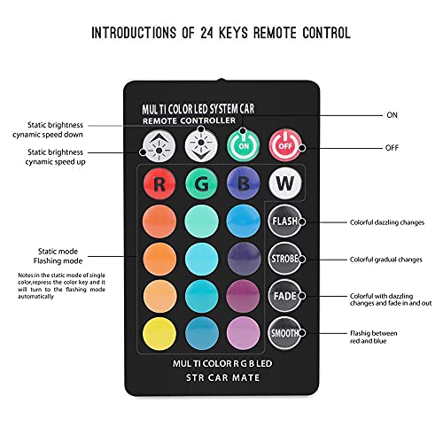 - 【Colorful Mode】16 kinds of static colors, such as red,green,blue,white,Yellow,Pink,Purple and so on, and 4 kinds of dynamic effects: flash, strobe, fade and smooth.