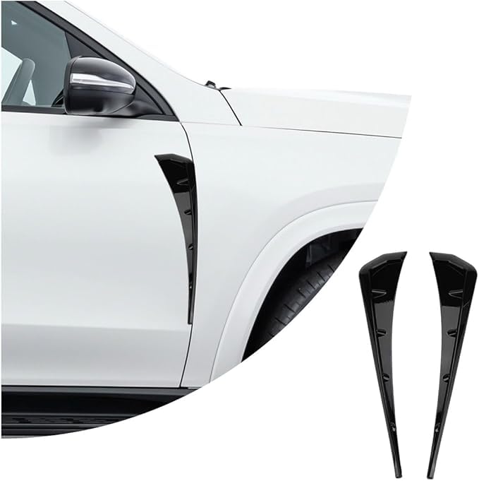 - 【Strong function】: The cover trim of the fender side vents can effectively protect the side vent from damage, and The streamlined shape is better for reducing wind resistance. The aerodynamic ventilation design can better flow into the engine compartment, which can improve the stability at high speeds. Increase the width of sight, distance warning protection.