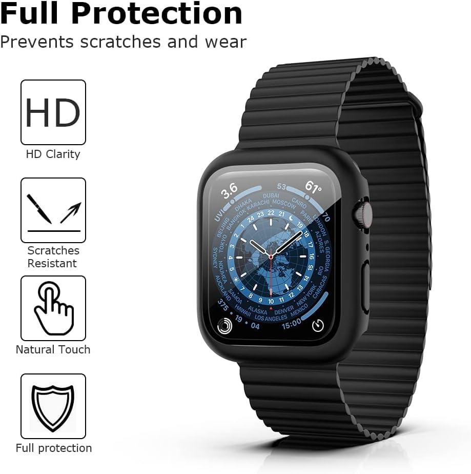 [2 Pack] Case Compatible for Apple Watch Series 8 7 45mm with Tempered Glass Screen Protector, Shockproof Ultra-Thin Hard PC Case All-Around Edge Protective Watch Series 7 Accessories