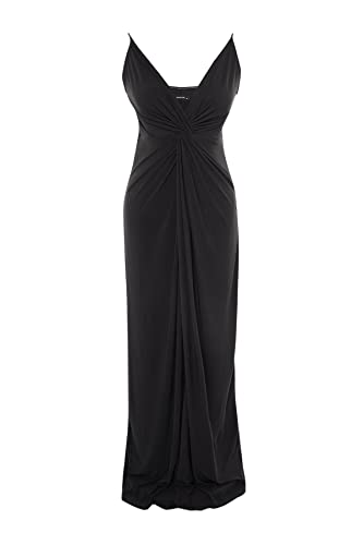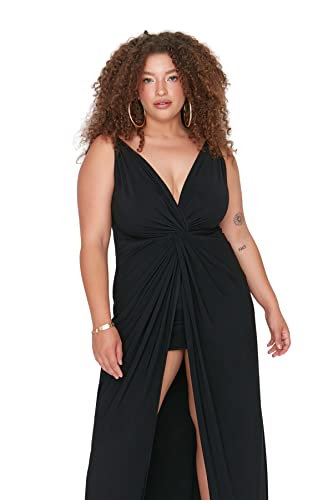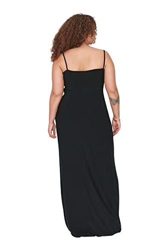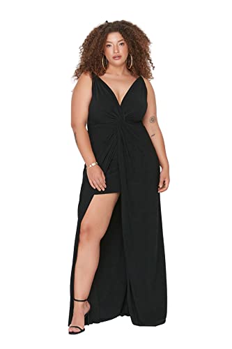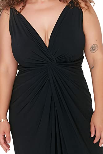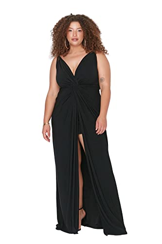 ترنديول فستان سهرة طويل محبوك بتفاصيل ثنيات للنساء TBBSS22AD00000 مقاس كبير (عبوة من قطعة واحدة)
