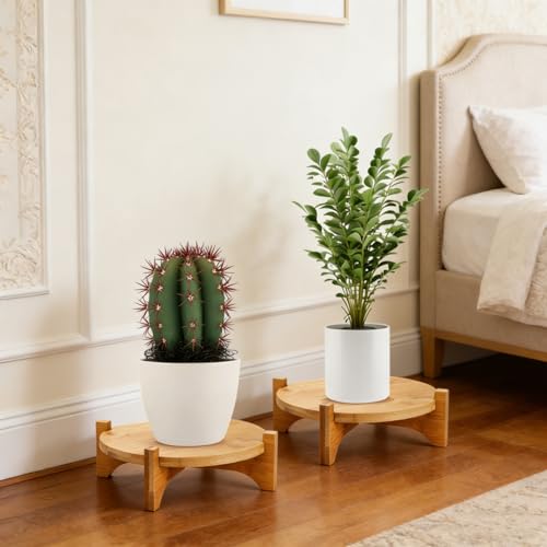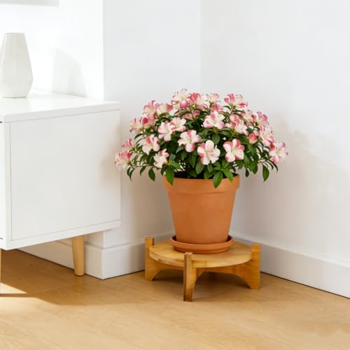 حامل نباتات من الخيزران من بومتوس، حامل نباتات بنمط منتصف القرن، حامل وعاء زهور قابل للفصل، رف نباتات متين للاستخدام الداخلي والخارجي والحديقة والمنزل، حامل أصيص نباتات حتى 20 سم (الوعاء غير متضمن)