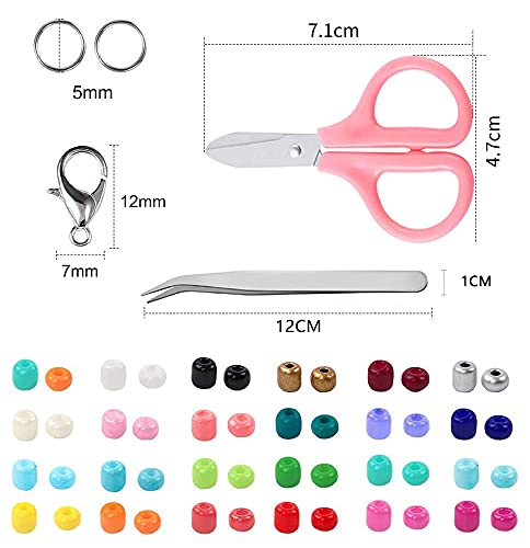 - الكمية: تحتوي كل عبوة على صندوق به 7.200 خرزة زجاجية ملونة، و300 خرزة بأشكال حروف من 5 أنماط، و20 متر من الخيط المطاطي 0.8 ملم، ومقص صغير، و20 زوج من مشابك لوبستر والحلقات المفتوحة.