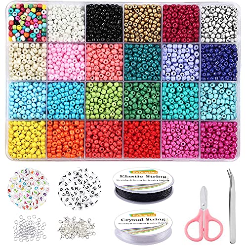 مجموعة من 7200 قطعة خرز و300 الحروف الابجدية لصنع الاساور زجاجي 4 ملم صناعة المجوهرات مع لفتين اساتك واكسسوارات