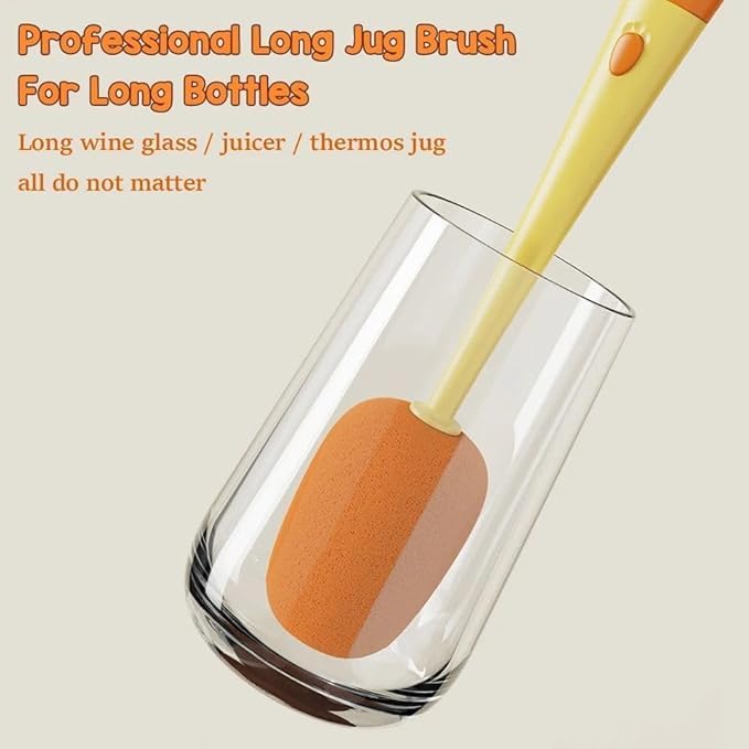 - مقبض طويل: يوفر المقبض الممتد على شكل جزرة وصولاً ممتازًا للتنظيف الشامل للأكواب الطويلة والزجاجات العميقة
