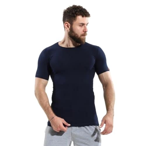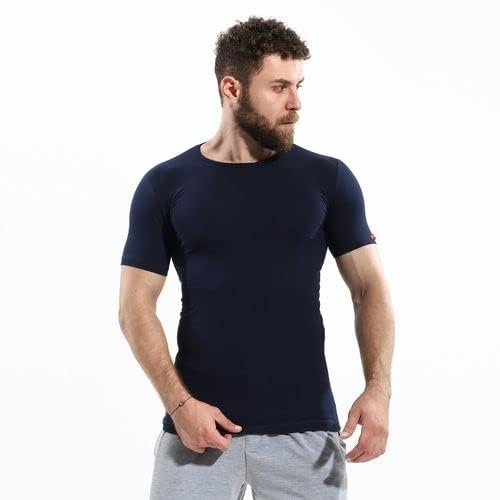 فانلة كم قصير مرنة للاولاد لون ازرق كحلي مقاس 3 من كوتونيل