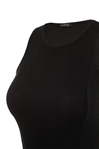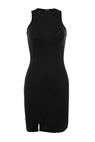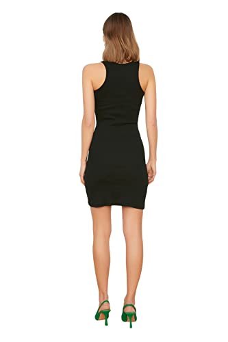 فستان قصير TWOSS21EL1487 مضلع منسوج قابل للتمدد وقبة برباط للنساء من ترنديول بلون أسود